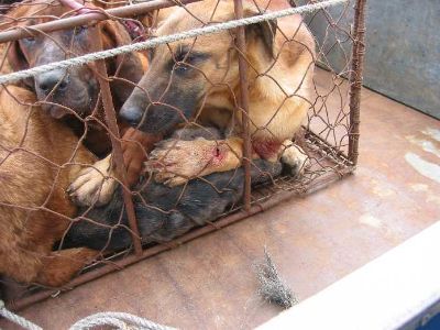 Unfassbar, die Hunde werden ohne Futter und Wasser in Käfige eingequetscht, verletzt, warten noch auf die Folter.