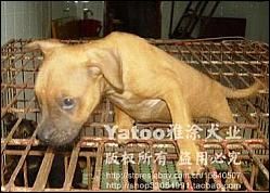 wegen der Fleischqualität, werden den Hunden in Käfigen der Bauch