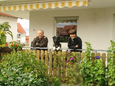 Arab muss alles im Blick haben, mit meiner Schwester und Schwager auf dem Balkon.